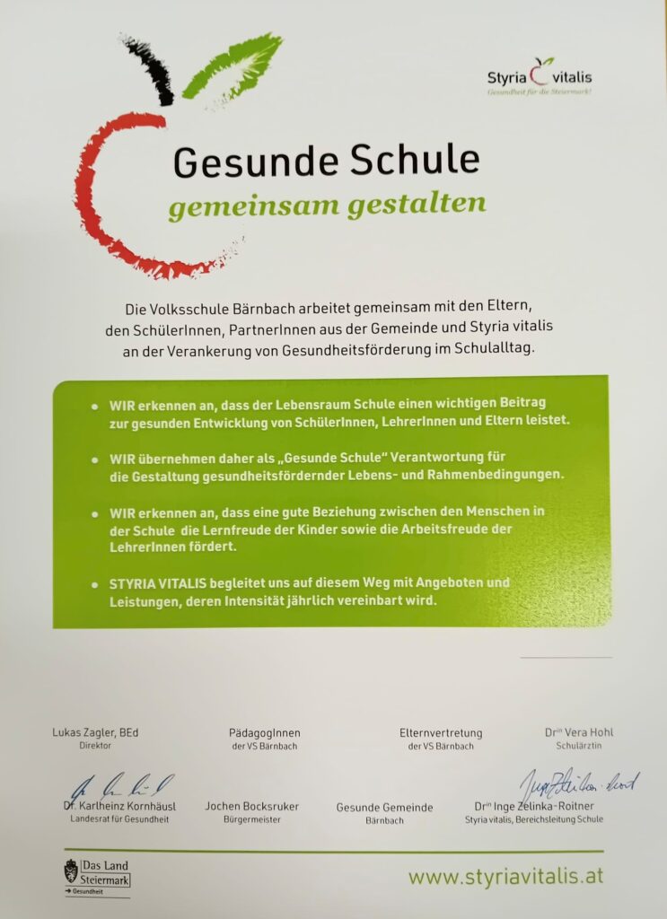 Unsere Schule arbeitet gemeinsam mit den Eltern, den SchülerInnen, PartnerInnen aus der Gemeinde und Styria vitalis an der Verankerung von Gesundheitsförderung im Schulalltag.