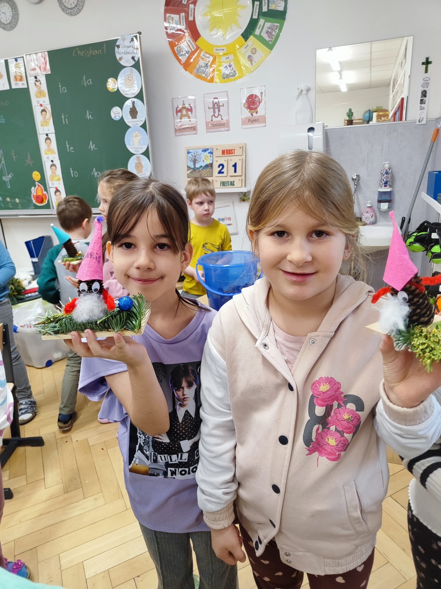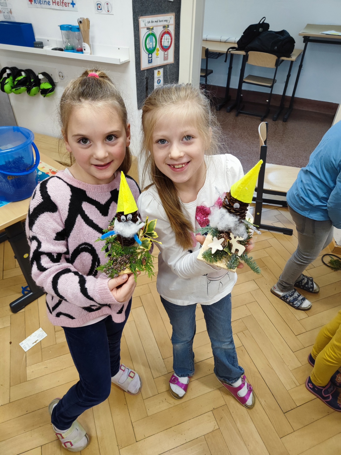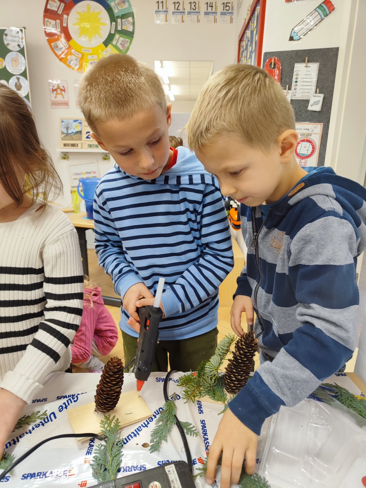 Gemeinsam mit Frau Lasnik wurde heute der Adventskranz gebunden und alle Kinder durften selbst eine kleine Adventsdekoration basteln.