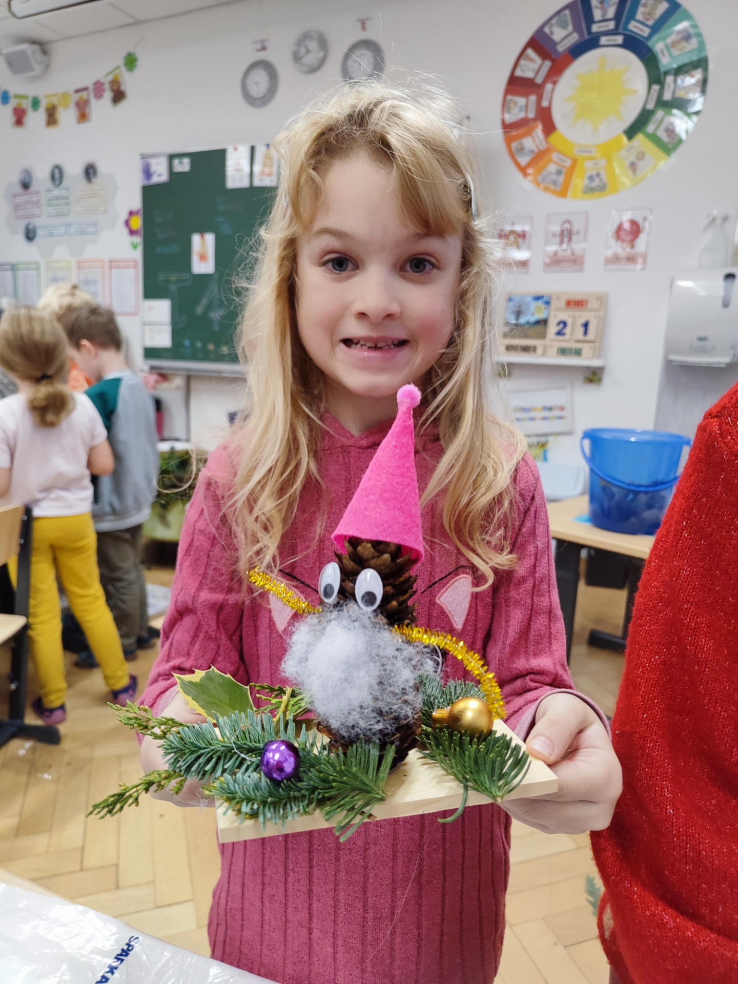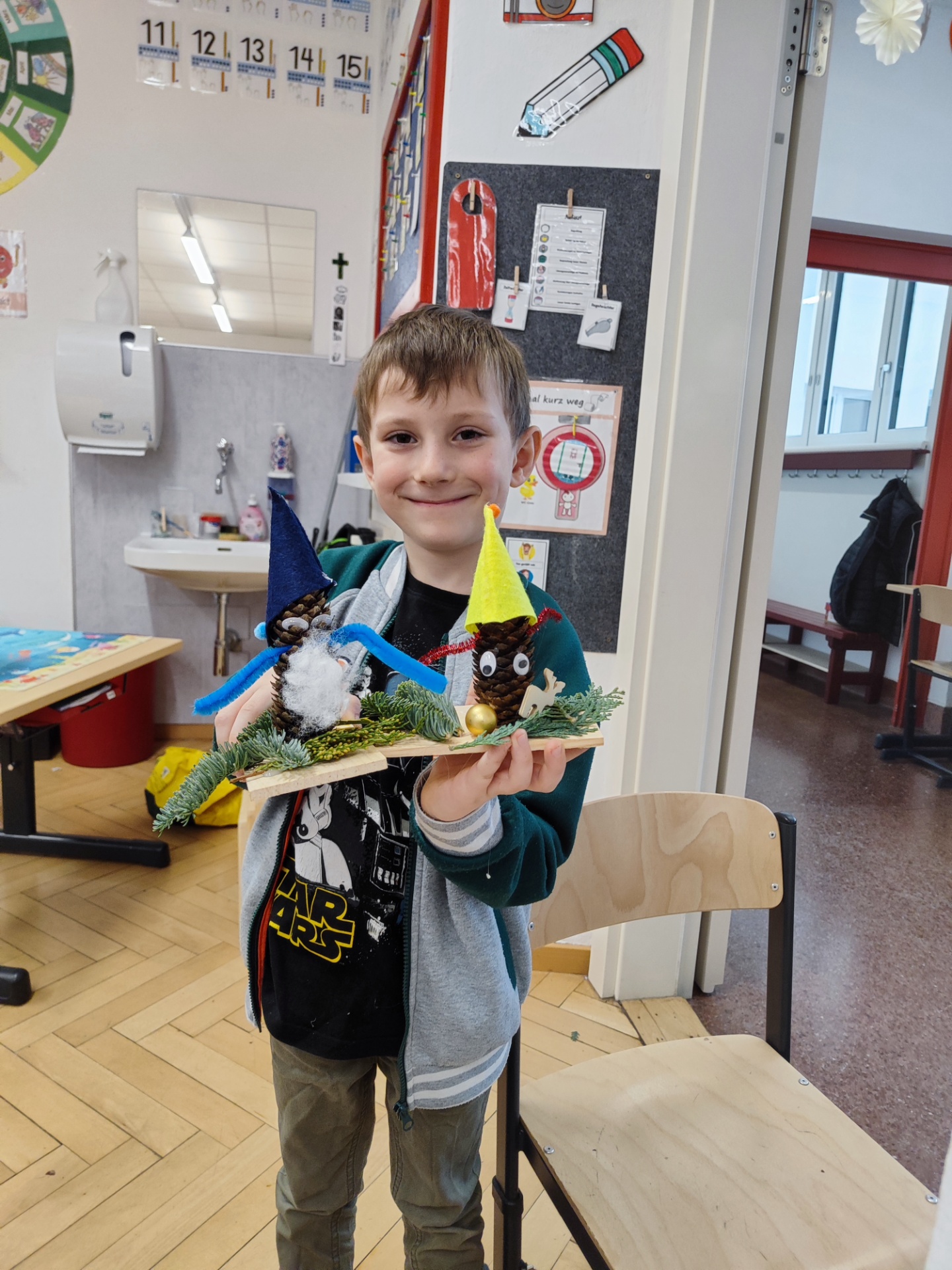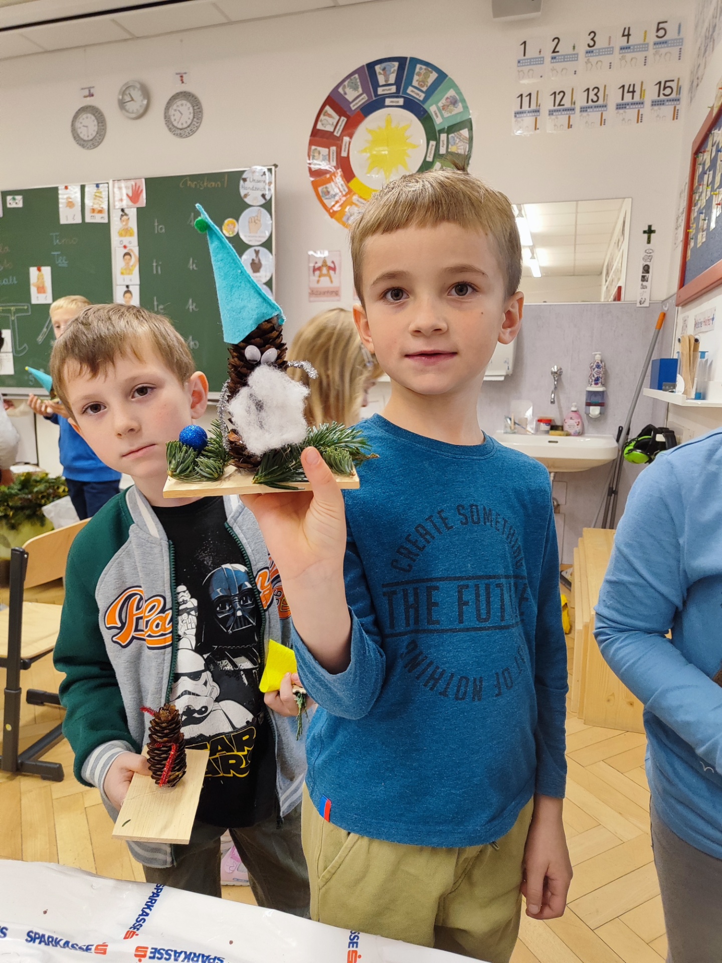 Gemeinsam mit Frau Lasnik wurde heute der Adventskranz gebunden und alle Kinder durften selbst eine kleine Adventsdekoration basteln.