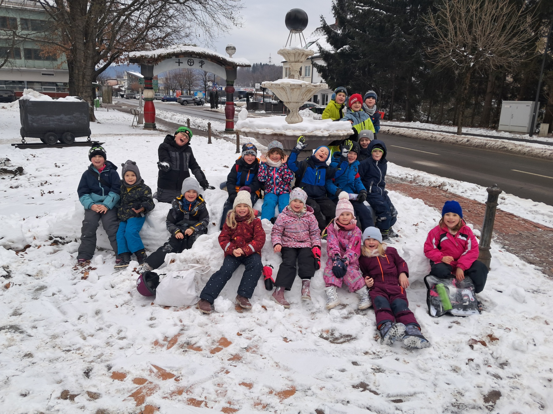 Die beiden 4. Klassen nutzten den Schnee für lustige Bobfahrten! ❄️🛷☀️...