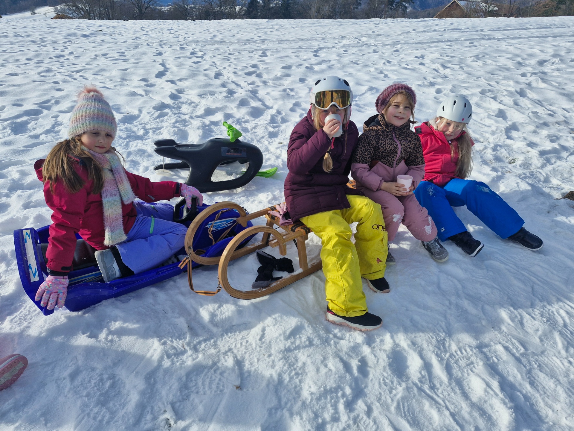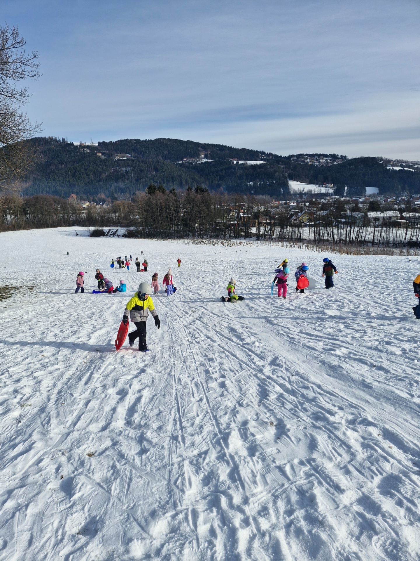 Bei herrlichem Wetter und perfekten Schneeverhältnissen verbrachten die Kinder der 2.c und der 2.b Klasse heute 2 Stunden im Freien. Sie flitzten mit ihren Bobs und Schlitten den Hang mehrmals rauf und runter und alle hatten sichtlich großen Spaß dabei. Vielen herzlichen Dank den Eltern, die uns mit 2 Leiterwagen begleitet und den Transport einiger schwerer Bobs übernommen haben. Nachdem frische Luft bekanntlich hungrig macht, konnten sich die Kinder zwischendurch bei köstlichem Kinderpunsch und Keksen stärken.