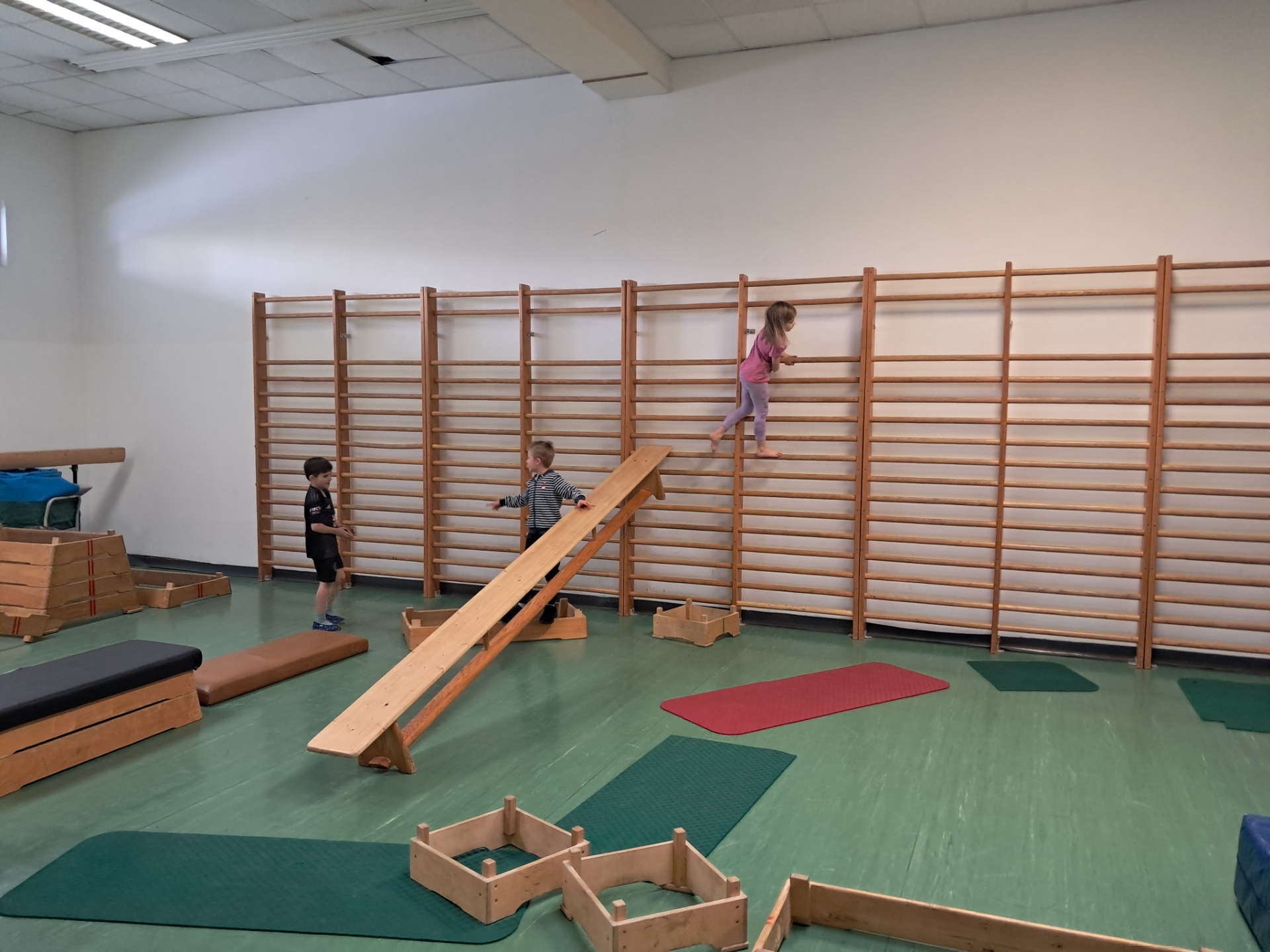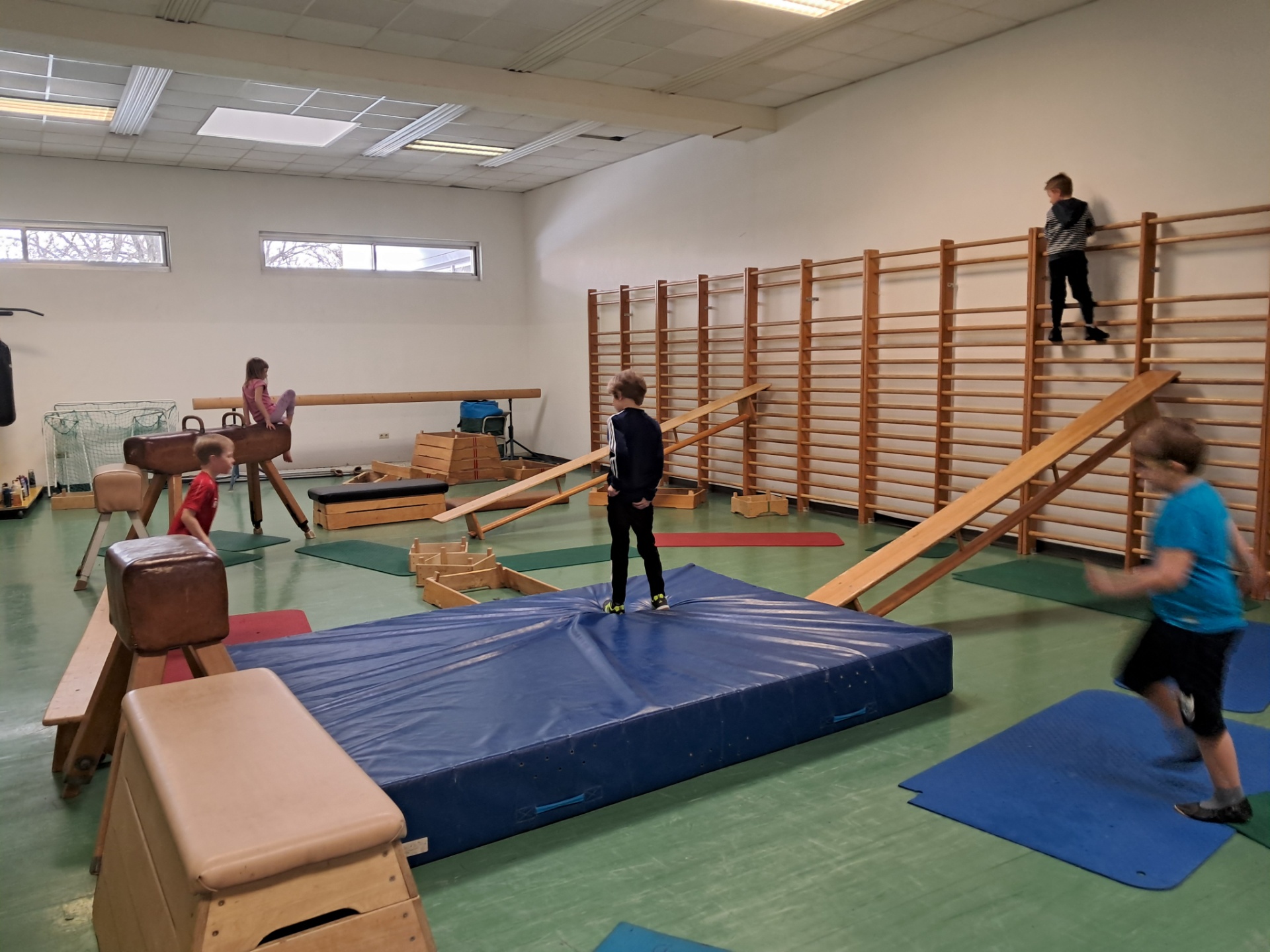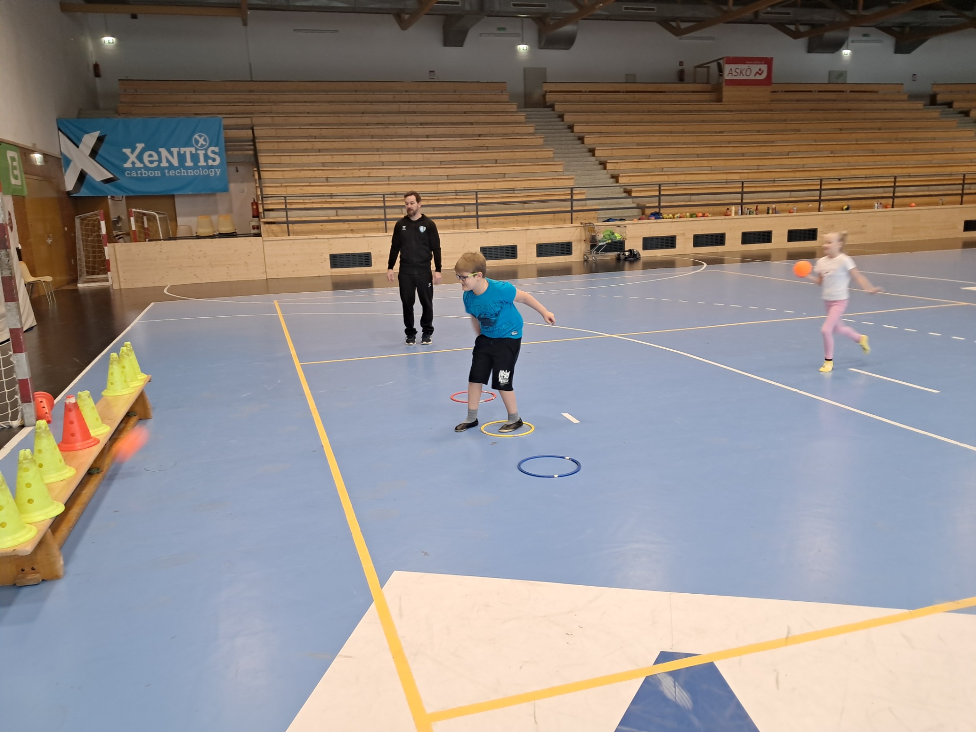 Wir verbrachten heute 2 tolle Bewegungseinheiten in der Sporthalle.Das Handballtraining mit Herrn Hrassnig schulte die Kinder in Koordination und Umgang mit Bällen und anschließend durften die Kinder einen großen Parcours im Gymnastikraum erobern.