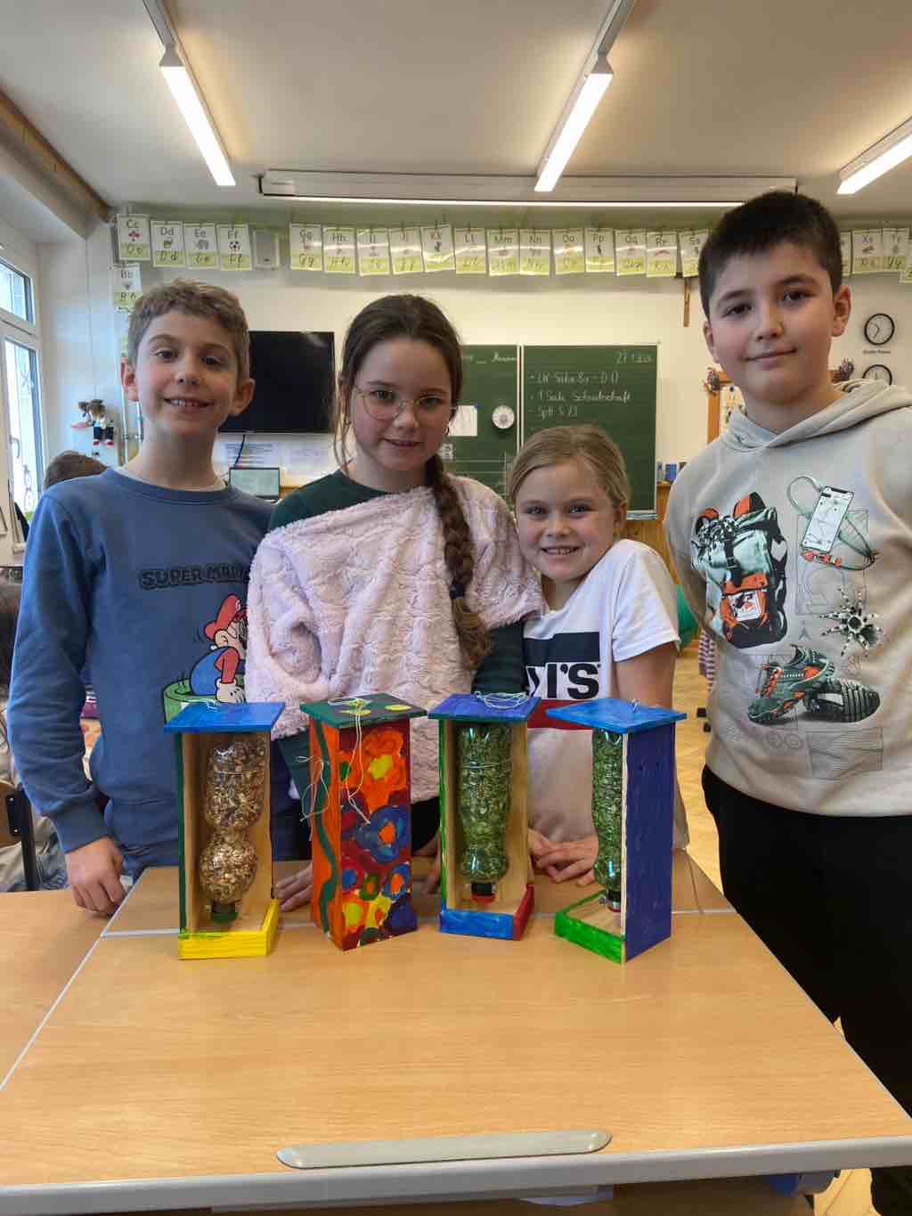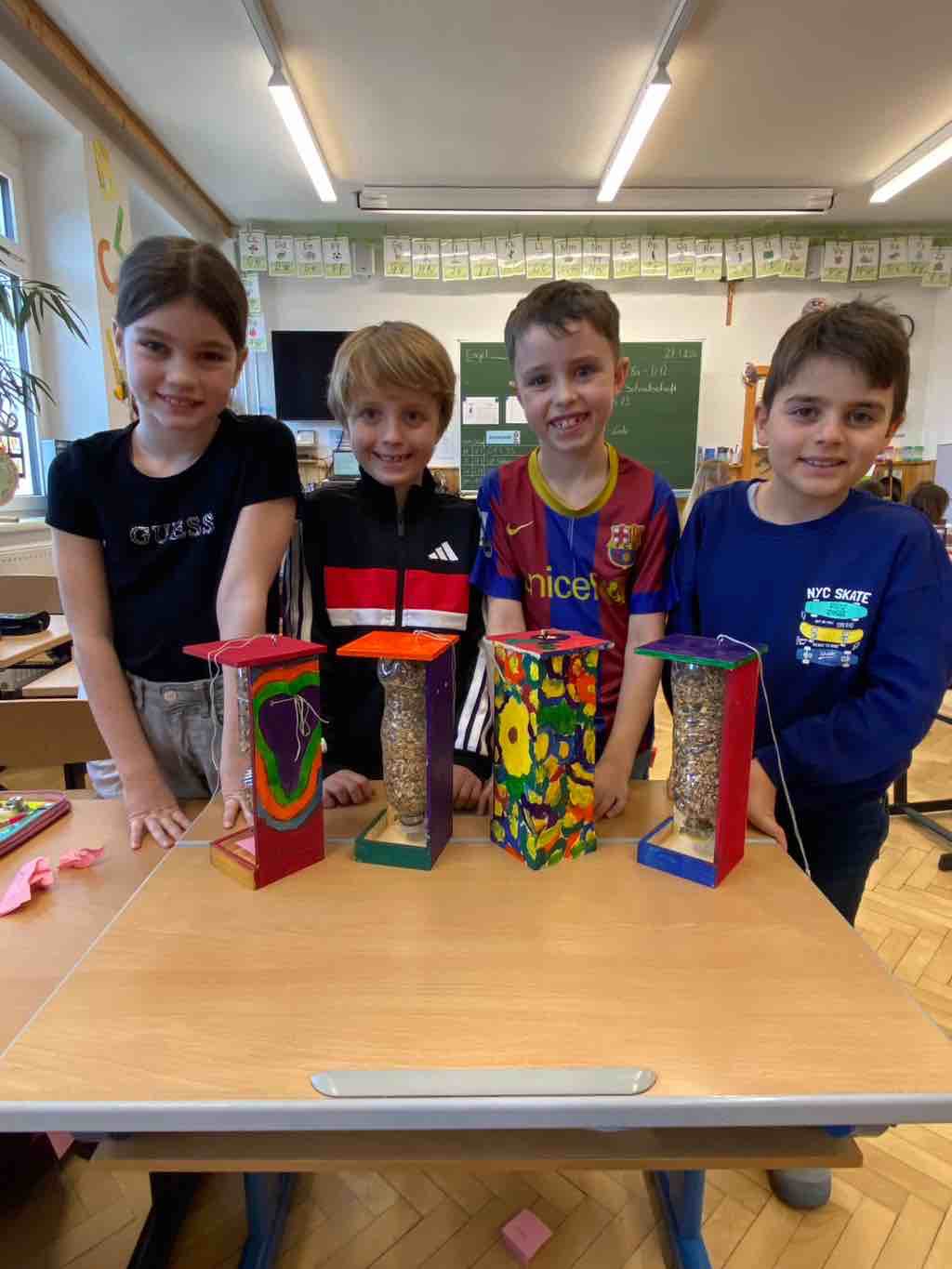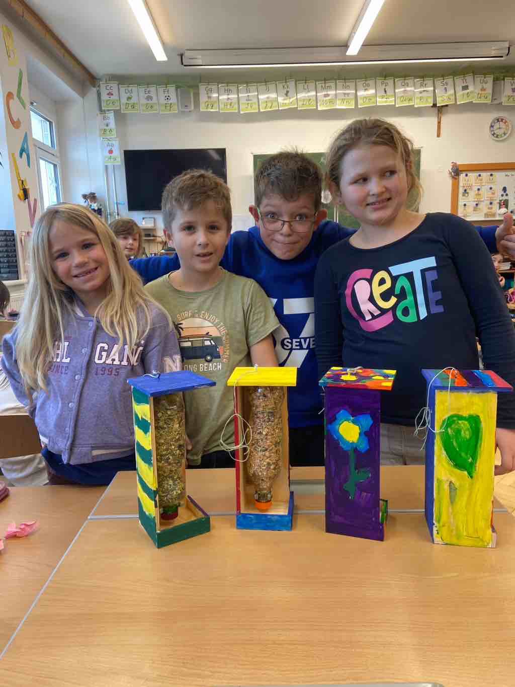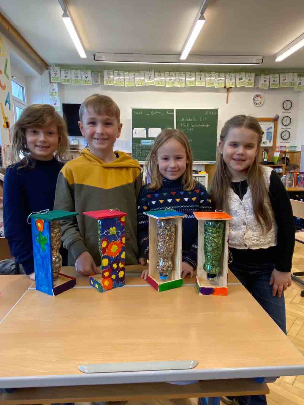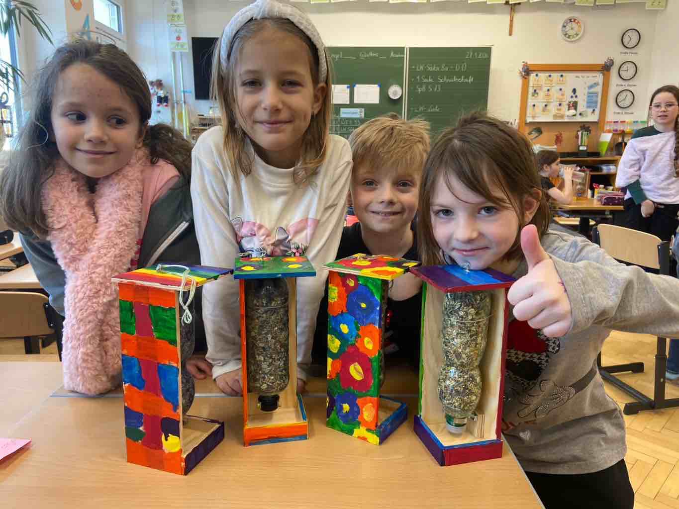 Alle haben große Freude mit ihren selbstgebauten Futterhäuschen! Nun nur noch einen guten Platz finden!