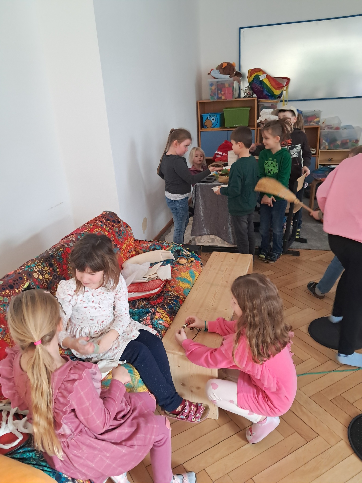 Die Kinder verbrachten beim Theaterworkshop einen Tag in einem Dorf von früher.